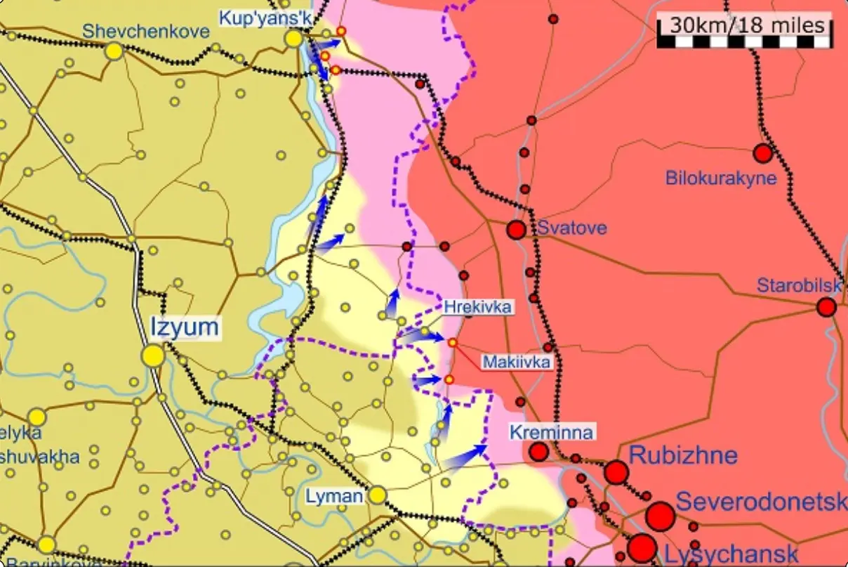 Украинските сили ја ослободија населбата Хрекивка откако преминаа во Луганската област северозападно од Кремина.