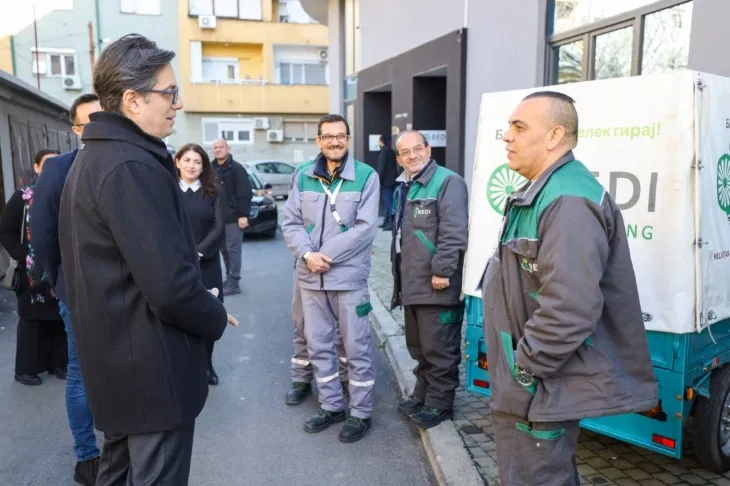 Како што соопшти Кабинетот на Пендаровски, шефот на државата беше запознаен со нивната работа и процесот на собирање на секундарни суровини од поставените корпи лоцирани во општините Аеродром, Карпош и Кисела Вода.