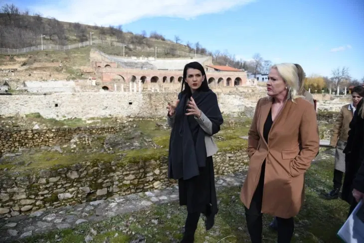 Министерката за култура Бисера Костадиновска-Стојчевска и амбасадорката на САД во нашата држава, Анџела Агелер денеска остварија средба во Хераклеја во Битола, каде беше претставен проектот за конзервација и презентација на мозаиците и архитектурата на локалитетот.
