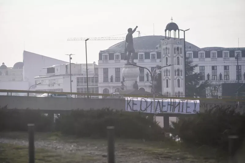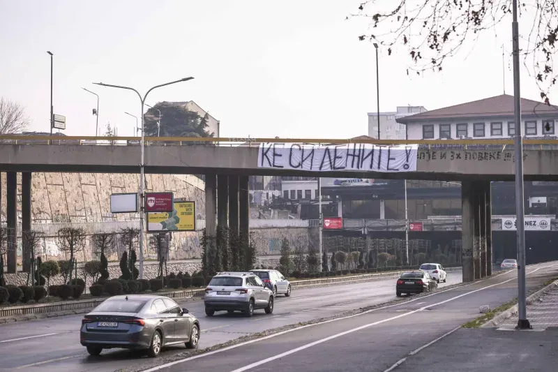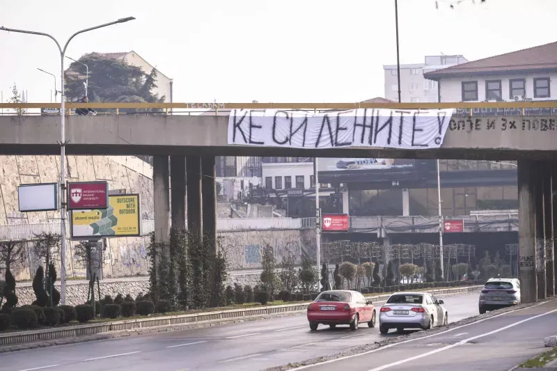 На надвозникот кај мостот „Гоце Делчев“ во Скопје утрово се појави транспарент на кој пишува „Ќе си лежите“.