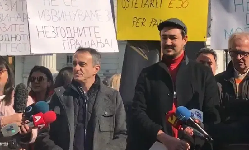 Новинари во рака држеа транспаренти во кои порачаа дека „нема да се извинуваат за незгодните прашања“, дека „нема да молчат“, како и дека „сиромаштија = автоцензура“.