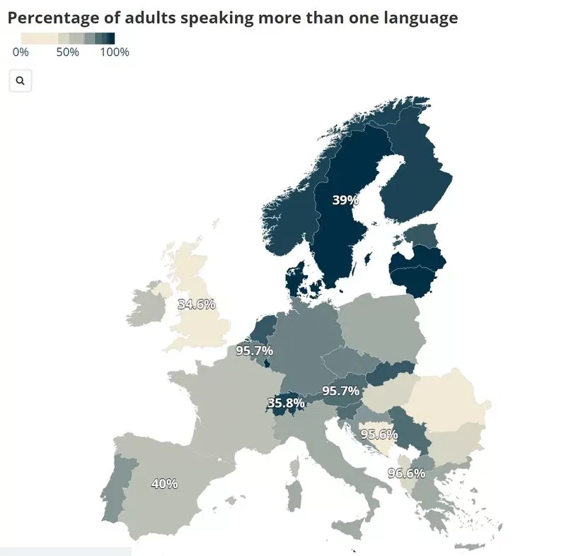 Генерално, Европејците се прилично добри во говерењето неколку јазици – околу 65 отсто од населението на континентот зборува барем еден јазик различен од нивниот мајчин јазик. За споредба, само околу 20 отсто од возрасните во САД зборуваат и друг јазик.