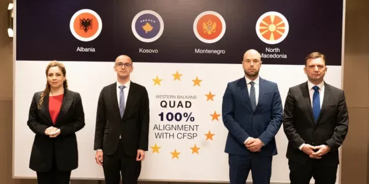 Министерот за надворешни работи, Бујар Османи, денес во Скопје, заедно со министерката за Европа и надворешни работи на Албанија, Ољта Џачка, заменик-министерот за надворешни работи и дијаспора на Косово, Крешник Ахмети и советникот за надворешна политика на Премиерот на Црна Гора, Ѓорѓе Радуловиќ лансираше нова платформа “Западен Балкан КВАД – 100% усогласеност со надворешната политика на ЕУ”.