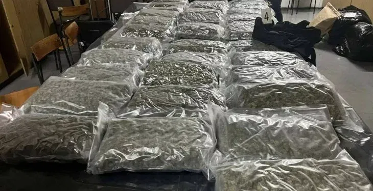Во патничко возило „мерцедес“ со скопски регистарски ознаки пронајдени се четири патни торби со околу 100 килограми висококвалитетна марихуана во вредност од околу 300.000 евра.