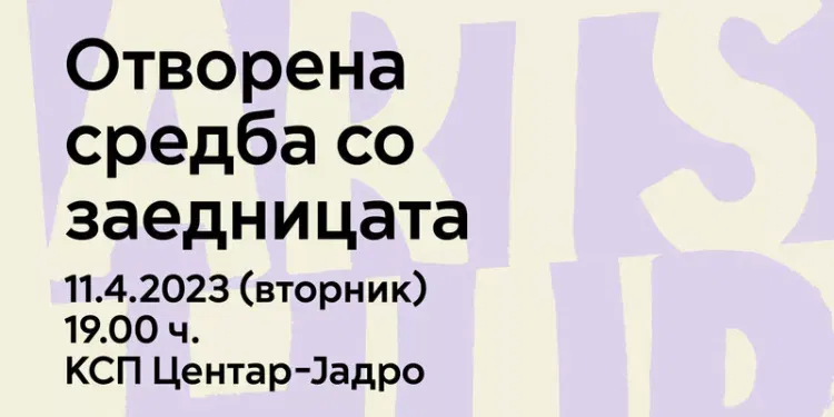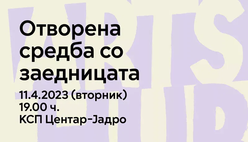 „На отворената средба е поканет секој кој сака да се вклучи во продуктивен дијалог кој ќе води кон нови и свежи решенија/идеи за уметнички интервенции, за можни акции и ќе иницира нови соработки и партнерства помеѓу уметниците од независната сцена и граѓаните. Преку оваа активност се надеваме дека ќе обезбедиме учество на заедницата и пошироката публика во сите фази на проектот Arts Hub кој што го развиваме со поддршка на Фондација Отворено општество – Македонија, 2023/24 година. Со организирање на овие отворени средби, проектот се стреми кон напуштање на класичните формати на продукција и презентација на уметнички проекти и се фокусира на активна работа со креативци од повеќе уметнички дисциплини, партиципативност, како и активно вклучување на граѓаните и публиката“, истакнуваат од Центар Јадро.