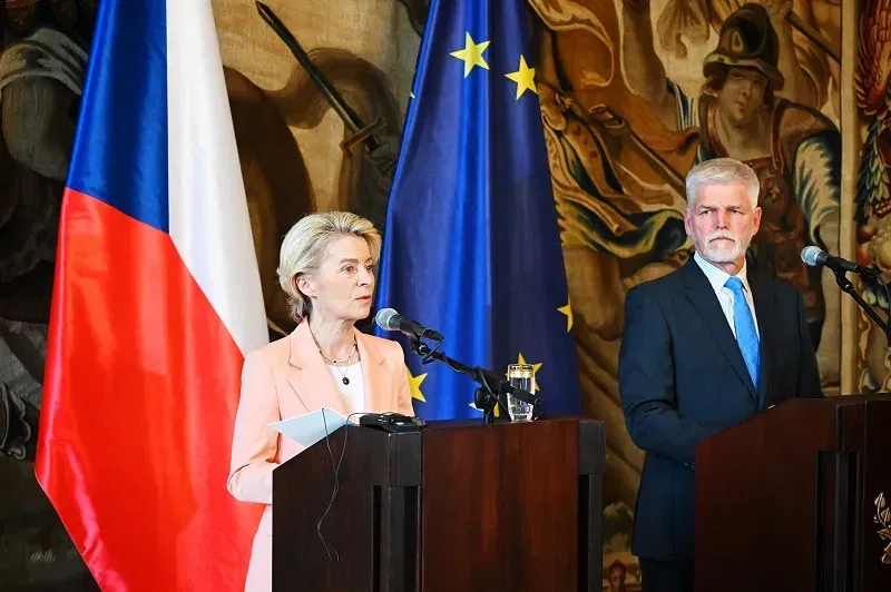 По разговорот со чешкиот претседател Петр Павел, Фон дер Лајен изјави дека Европската комисија утре ќе предложи закон за производство на муниција.