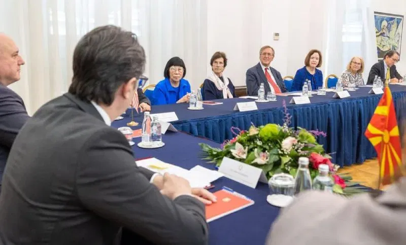 На средбата со членовите на делегацијата на Советот, составена од поранешни амбасадори на Соединетите Американски Држави, се разговараше за македонско-американското партнерство и пријателство и регионалните прашања од интерес за безбедноста и стабилноста на Западен Балкан.
