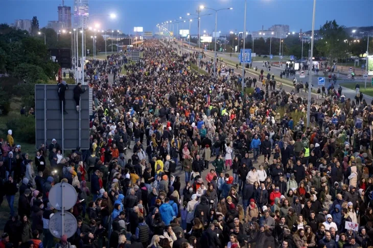 Во Белград повеќе десетици илади граѓани по третпат на протест „Србија против насилството“, блокиран мостот Газела