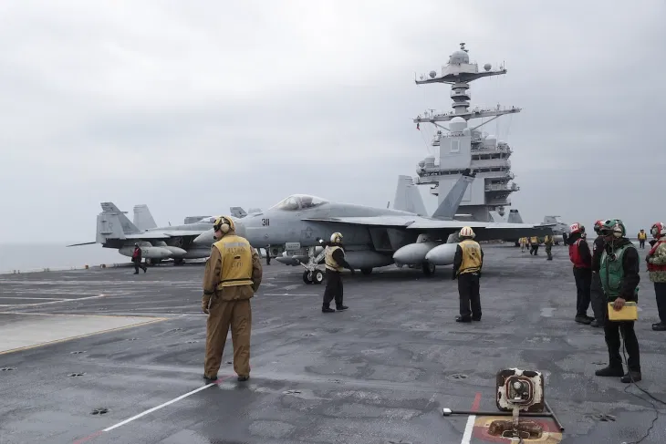 Американската морнарица на почетокот на мај објави дека „Џералд Форд“ тргнал од Норфолк, Вирџинија, на своето „прво борбено распоредување“.