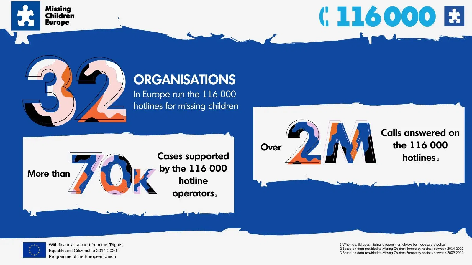 Мрежата на европски бесплатен телефон 116 000 за помош за исчезнати деца минатата година примила вкупно 70.855 повици поврзани со 6.668 случаи. Мрежата им се обезбедува на децата и семејствата бесплатна и непосредна емоционална, психолошка, социјална, правна и административна поддршка 24 часа секој ден.