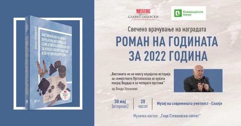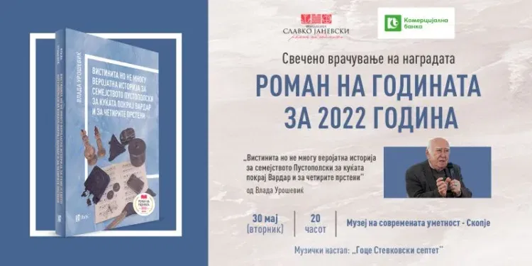 Свеченото врачување на наградата „Роман на годината” за 2022 година ќе се одржи утре, вторник (30 мај) во Музејот на современата уметност во Скопје, со почеток во 20 чаот.