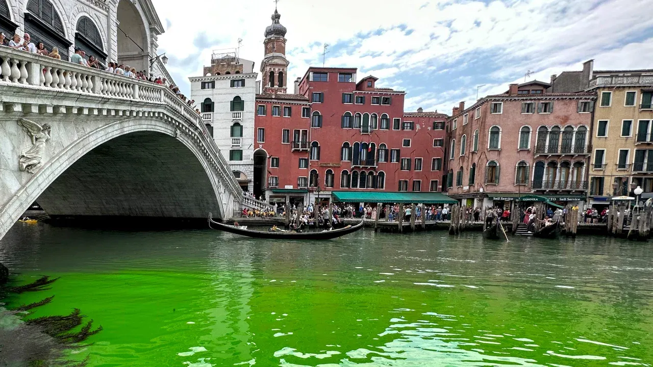 Полицијата во Венеција ги истражува причините за зелената течност што се појави во градскиот Голем канал, а неофицијално се зборува дека инцидентот бил предизвикан од демонстранти за климатските промени.