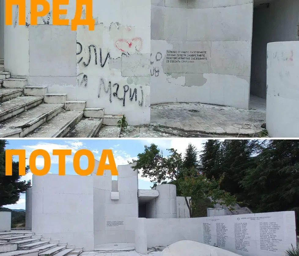 Службите на Музејот од Струмица веќе ги завршија активностите за детално чистење на отпадоците од површината и вегетацијата, како и детално чистење на самиот споменик од поликолорот и графитите исцртани на мермерот. Во периодот што следува, продолжува санацијата и реконструкцијата на оштетениот мермер на површината на споменичната целина, како и хортикултурно уредување на Спомен-костурницата.