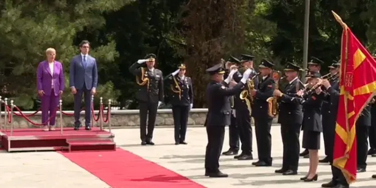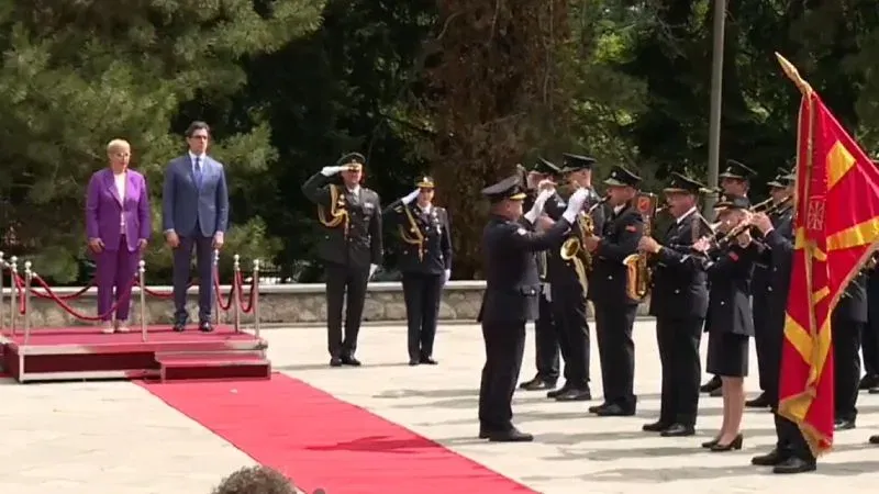 Словенечката претседателка Пирц Мусар е пречекана со највисоки државни и воени почести за време на официјална церемонија во Кабинетот на претседателот.