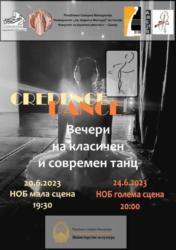 Факултетот за музичка уметност (ФМУ) – Скопје од денеска до 24 јуни  првпат организира мини танцов фестивал „Creadance Dance: Вечери на класичен и современ танц“ чија цел е  да се овозможи претставување на студентите на ФМУ од катедрата за балетска педагогија и алумните на факултетот.