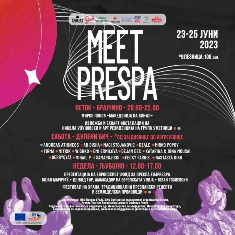 На тромеѓето на Преспанското Езеро почнувајќи од вечер до 25 јуни ќе се одржи автентичен фестивал „Запознај ја Преспа“, кој спојува музика, уметност, традиција, гастрономија и работилници за иден развој на туризмот во овој регион.
