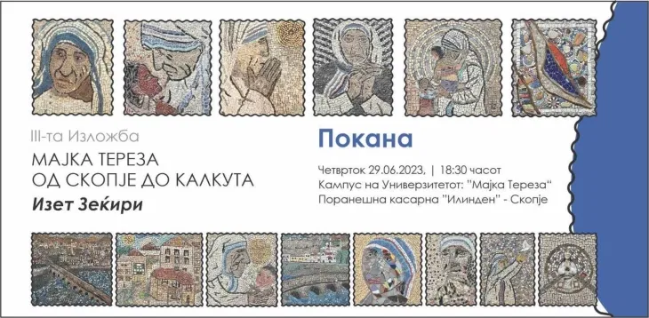 Изложба насловена „Мајка Тереза од Скопје до Калкута“ од  Изет Зеќири, ректор на Универзитетот „Мајка Тереза“ во Скопје (УМТ) вечер ќе биде отворена во просториите на УМТ.