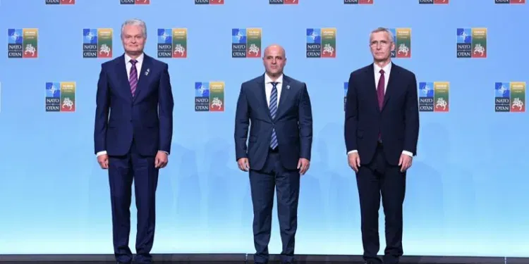 Ковачевски пречекан од литванскиот претседател Науседа и генералниот секретар на НАТО Столтенберг на Самитот на НАТО