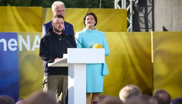 Украинскиот претседател Володимир Зеленски, кој денеска пристигна во Вилнус каде се одржува важен самит на НАТО, им се обрати на насобраните граѓани на ненајавен голем собир во центарот на главниот град на Литванија, објави Укринформ.