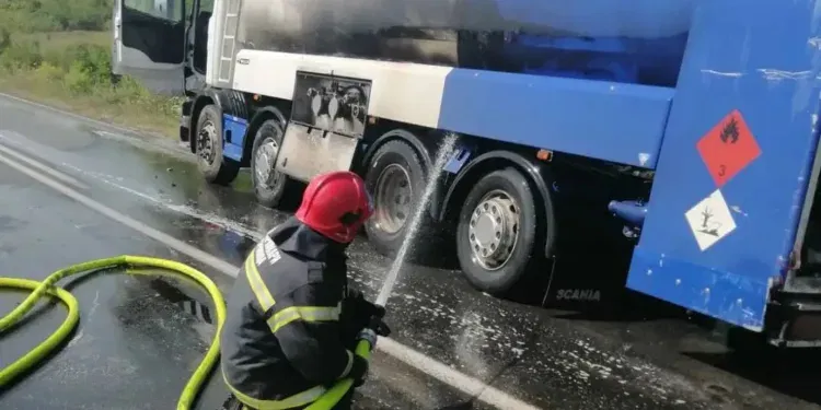 Шест пожарникари со две противпожарни возила ја гаснеа цистерната што утрово се запали на регионалниот пат Струмица-Радовиш.