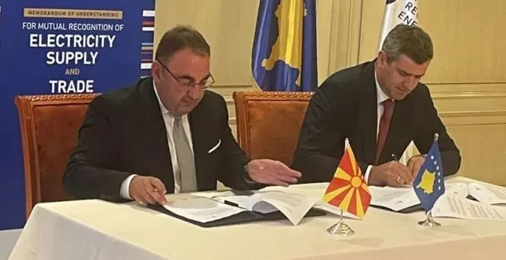Меморандумот со кој што меѓусебно се признаваат издадените лиценци за снабдување/трговија со електрична енергија денеска во Приштина го потпишаа првите луѓе на регулаторните тела Марко Бислимоски и Имер Фејзулаху во присуство на министерката за економија на Косово, Артане Ризваноли.