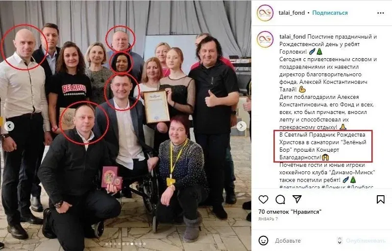 Една од објавите на Фондацијата Талаи вели дека доаѓањето на децата во Белорусија било организирано со помош на Претседателскиот спортски клуб и лично претседателот на организацијата, Дзмитриј Лукашенко.