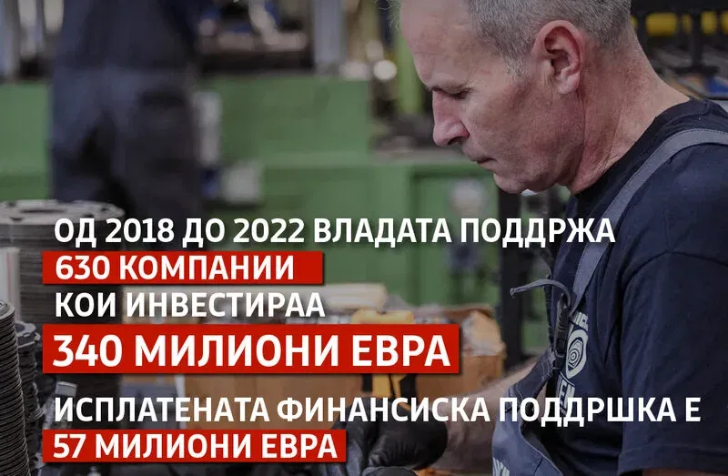 Партнерскиот и инклузивниот пристап во креирањето и спроведувањето на економските политики на Владата дава резултати, преку Законост за финансиска поддршка на инвестиции Владата на Република Северна Македонија од неговото воведување, односно во периодот од 2018 до 2022 година, со околу 57 милиони евра, поддржа 630 компании кои инвестираа над 340 милиони евра. Довербата на деловните субјекти во институциите и нашите економски политики од година во година се зголемува, бројот на потпишани договори за финансиска поддршка на компаниите континуирано расте, вели вицепремиерот Фатмир Битиќи во соопштение испратено од владините служби.