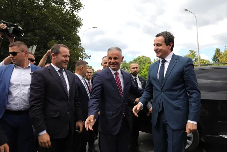 Како што се наведува во соопштението од МВР, за време на официјалната посета на косовската делегација на земјава, предводена од претседателот на Владата на Република Косово, Албин Курти, при организираниот пречек на 11 август, на улицата „Ферид Мурати“ во Скопје и на Градскиот плоштад во Тетово, не е постапено согласно Законот за употреба на грбот, знамето и химната на Република Северна Македонија.