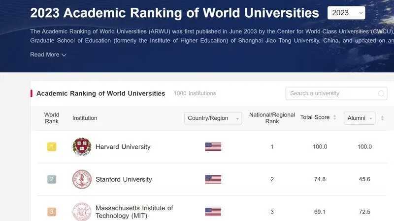 На врвот на најновото рангирање на универзитетите во светот во 2023 година на Шангајската листа и натаму се универзитетите од САД Харвард, Стенфорд и Институтот за технологија Масачусетс (МИТ). На листата меѓу првите илјада универзитети во светот и годинава нема ниту еден од нашата држава.