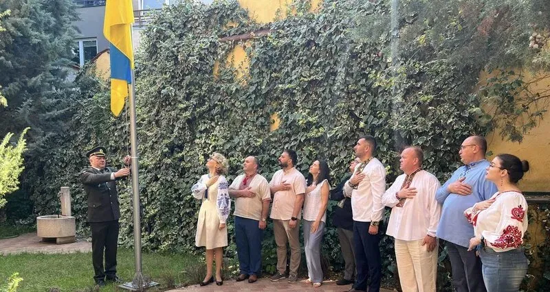 Украинското знаме, денеска по повод Денот на државното знаме на Украина, во присуство на амбасадорката Лариса Дир и украинска делегација, беше подигнато пред Министерството за одбрана и Министерството за внатрешни работи на Северна Македонија, а беше поставено и на зградата од Министерството за надворешни работи.