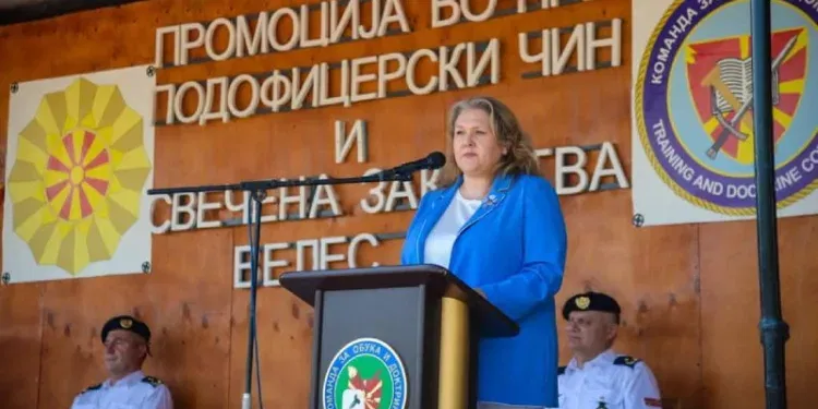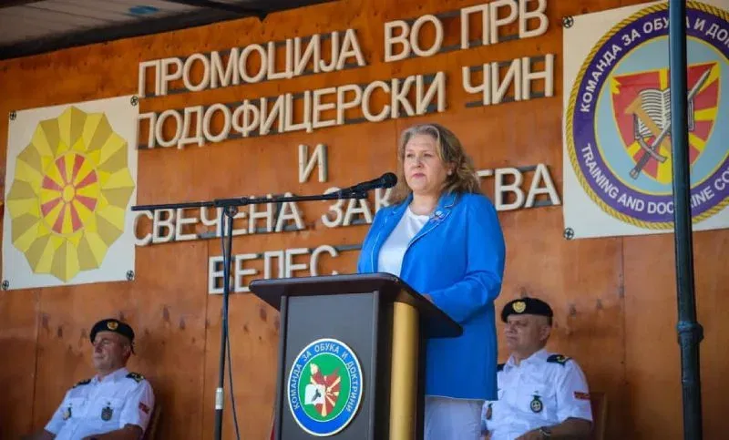 -Токму затоа Командата за обука и доктрини е клучната карика преку која новите војници се надоврзуваат на Армијата. Процесот на обука тука е само првото скалило кое овозможува влез во војничката кариера, но личното унапредување и усовршување никогаш не треба да запрат. Како што се менуваат предизвиците во светот во кој живееме така и ние се менуваме и прилагодуваме. И тоа и дава поткрепа на нашата лична отпорност. А градењето на отпорност како една од клучните концепти на НАТО треба секогаш да започне со личен пример. Нашата подготвеност брзо, ефикасно и одлучно да реагираме на секоја ситуација ја покажува и нашата подготвеност да ги одбраниме вредностите кои ги споделуваме и да ги заштитиме државата и нашите граѓани. И токму затоа покрај сите предизвици со кои е соочено нашето општество, како министерка секогаш давам дополнителни напори за унапредување на Армијата како целина и квалитетот на живот на секој поединец во неа, потенцира Петровска.