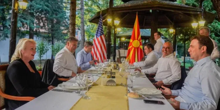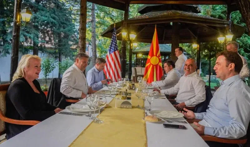 Премиерот Димитар Ковачевски, министерот Бујар Османи и вицепремиерот Бојан Маричиќ синоќа биле на работна вечера со американската амбасадорка, Анџела Агелер и заменик-помошникот државен секретар на САД и специјален претставник за Западен Балкан, Габриел Ескобар.