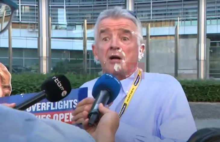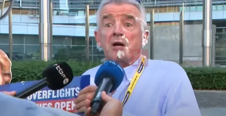 Мајкл О’Лири, извршен директор на Рајанер, една од најголемите европски авиокомпании, беше нападнат од еколошки активисти пред Европската комисија во Брисел.