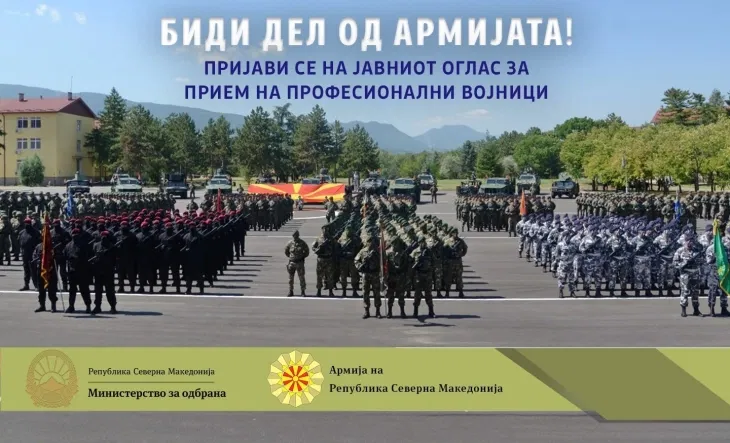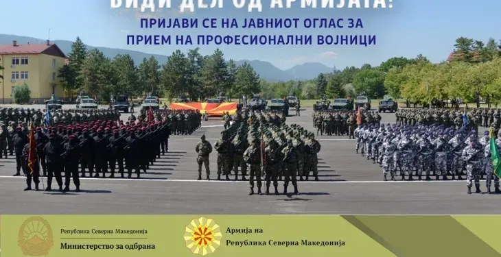 Министерството за одбрана денеска го објави Јавниот оглас за прием на 150 професионални војници на служба во Армијата на Република Северна Македонија.