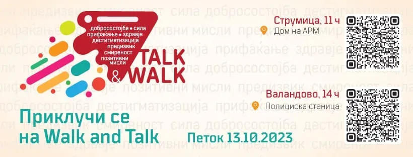 Во петок во Струмица и Валандово ќе се организираат „Walk and Talk“ настани кои целат да ја подигнат свеста и да ја надминат стигмата поврзана со менталното здравје помеѓу младата популација.