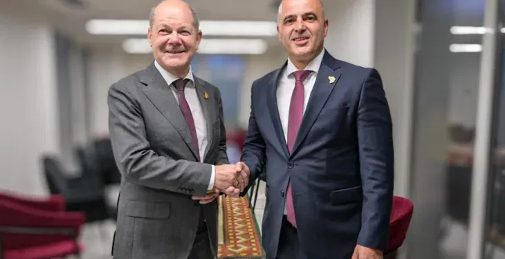 -Од германскиот канцелар Олаф Шолц и од СР Германија, Северна Македонија уште еднаш доби силно охрабрување и поддршка за реализација на следниот чекор на зацртаниот пат кон пристапувањето во ЕУ – носењето на значајните одлуки кои ги имаме пред нас. Напорите на Владата на Република Северна Македонија за продолжување на евроинтеграцискиот процес беа поздравени и препознаени како позитивен исчекор и напредок во исполнувањето на критериумите за пристапување. Исклучително е важно Северна Македонија да го продолжи европскиот пат и земјата да постигне консензус за стратешките прашања кои се од интерес на граѓаните, се наведува во соопштението.