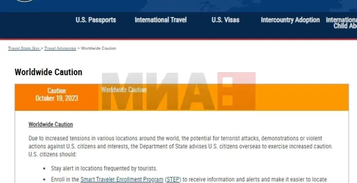 – Поради зголемените тензии на различни локации низ светот, потенцијалот за терористички напади, демонстрации или насилни дејствија против граѓаните и интересите на САД, Стејт департментот ги советува американските граѓани во странство да бидат особено претпазливи, се вели во соопштението.