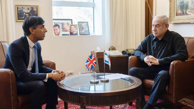 По средбата на Херцог, Сунак имаше состанок и со израелскиот премиер Бенјамин Нетанјаху, а на заедничка прес-конференција изјави дека Велика Британија ќе се солидаризира со Израел и сака негова победа.