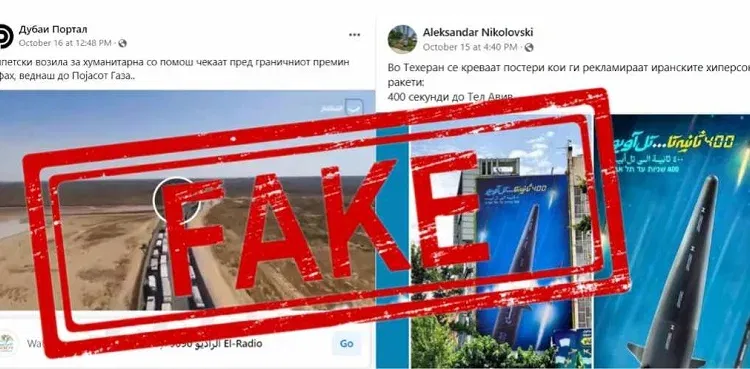 Вистиномер ги анализира и дебанкира последните објави на два македонски Фејсбук профили кои шират дезинформации, од кои едниот, како актуелна содржина објавува видеоматеријал со заглавен конвој на граничниот премин Рафах, кој всушност не е од 2023 година, туку е стар повеќе од две години. Како што пишуваат проверувачите на факти на Ројтерс, видеото со египетскиот конвој хуманитарна помош е од мај 2021 година, а не од 2023 година, додека во друга Фејсбукобјава се споделуваат фотографии на кои се гледа постер за кој се тврди дека е поставен во Техеран, по почетокот на конфликтот помеѓу Израел и Палестина што се случи неодамна, но, фотографијата е извадена од контекст и не претставува скорешен настан.