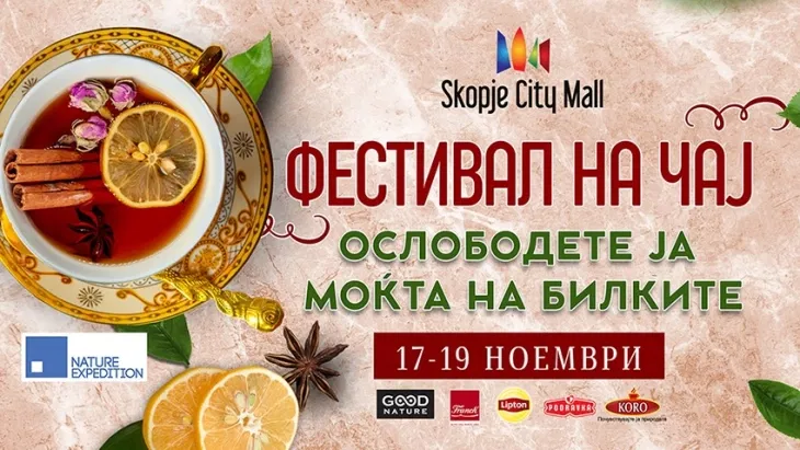 -На тридневниот фестивал посетителите ќе имаат исклучителна можност да дегустираат и купат чаеви и да дознаат повеќе за добрината на природата, традицијата и културата, како и за моќта на лековите билки од професионалци за ароматични билки и есенцијални масла. Фестивалот е фокусиран на природната медицина – лековитите билки, од кои се подготвуваат чаеви, есенцијални масла и сапуни, препарати за здрав живот, мелеми и чајни колачи од билки, понатаму шумски плодови, мармалади и чаеви со тартуфи. Посебен простор е резервиран за пчелни производи, како природниот мед, козметика од мед и пчелни производи за поздрав живот. Неколку уметници и ракотворци ќе го дообојат фестивалот со рачно изработени чајници и филџани за чај. Посетителите ќе имаат можност да добијат и совети за поздрав живот од производителите на чаеви и есенцијални масла од ароматични и лековити билки, велат организаторите – Платформата за истражување и промоција на природата и културата „Nature Expedition“ и Скопје Сити Мол.