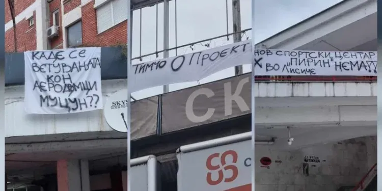 На еден од транспарентите низ општината беше истакнато и дека сѐ уште ја нема ни ветената спортска сала „Пирин“ во Лисиче.