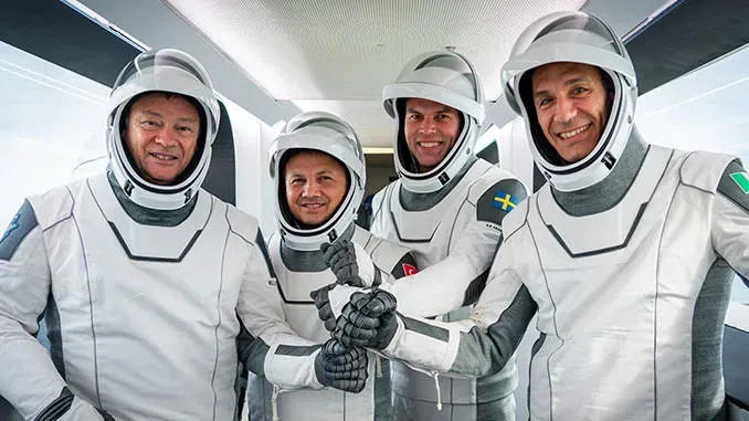 Капсулата „СпејсИкс Кру Драгон“ со четиричлениот европски екипаж беше лансирана со ракетата „Фалкон 9“. Во состав на екипажот се италијанскиот воздухопловен полковник Валтер Виладеи, кој е и пилот на леталото, шведскиот авијатичар Маркус Ванд, припадникот на турските Воздухопловни сили, Алпер Гезеравџи, како и пензионираниот астронаут на НАСА, Мајкл Лопез-Алгерија, кој има двојно американско и шпанско државјанство и воедно е командант на летот.