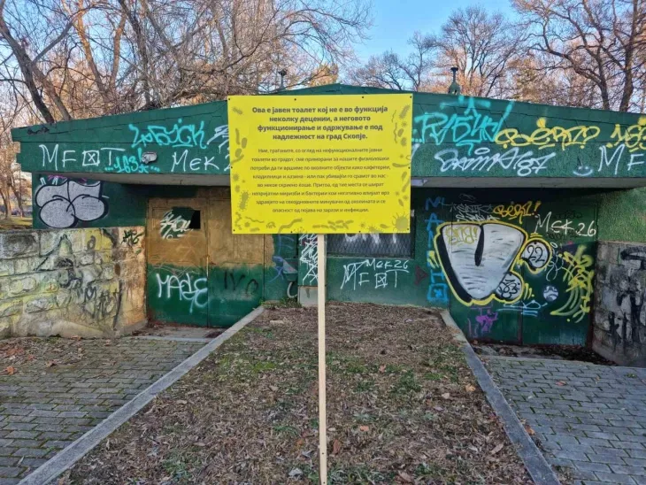 На повеќе локации околу мостот „Гоце Делчев“ и во градскиот парк во Скопје, беа поставени знаци со натписи кои се однесуваат на недостатокот на јавни тоалети во главниот Град. На ваков начин се прави обид да се актуелизира барањето и потребата на граѓаните на Скопје за решавање на овој проблем за кој Градот досега не понудил решение.