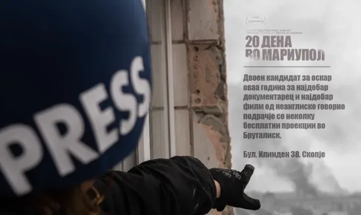 Со серија на кино проекции на годинашниот двократен кандидат за Оскар, „20 дена во Мариупол“, културниот центар „Бруталиск“ во соработка со здружението на Украинци „Лесја Украинка“ од Скопје, ја одбележува двегодишнината од руската инвазија врз Украина.