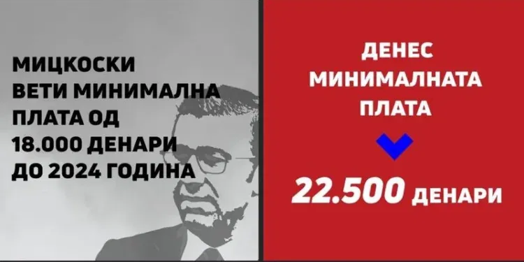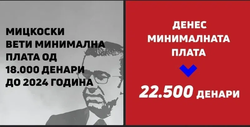 „Во 2020 ДПМНЕ ветија минимална плата до 2024 година ќе стигне 18.000 денари. Со добрите системски решенија на СДСМ во 2024 година минималната плата е 22.500“ напиша дополнителната заменичка министерка за труд и социјална политика Јована Тренчевска на социјалните мрежи.