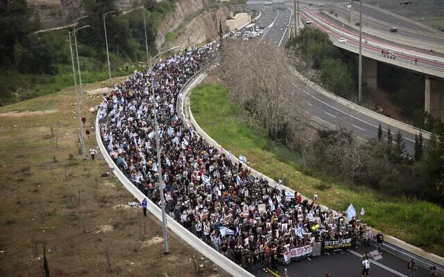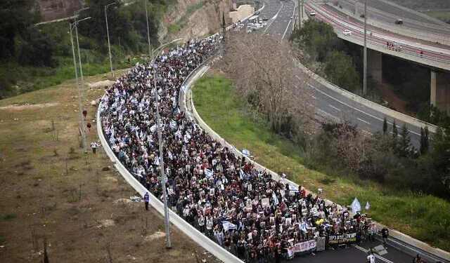 Илјадници Израелци кои бараат ослободување на заложниците од Газа денеска маршираа до Ерусалим, додека преговарачите се подготвуваат за продолжување на преговорите во Каиро, кои би вклучиле договор за размена на заложници и заробеници со Хамас. Колона демонстранти, предводени од семејствата на заложниците киднапирани од милитантите за време на смртоносниот упад на Хамас во јужен Израел на 7 октомври, се собраа пред изгрејсонце и се упатија по автопатот кон Ерусалим, објави Тајмс оф Израел.