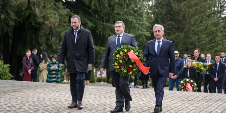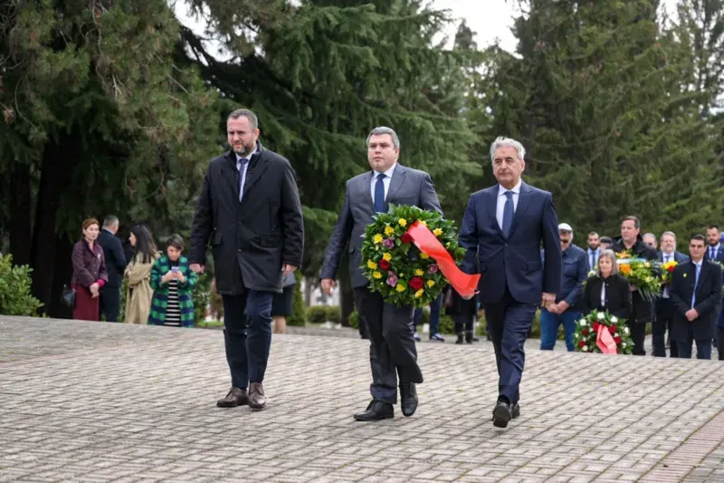 Владина делегација положи цвеќе и оддаде почит пред спомениците на депортираните македонски Евреи и на паднатите борци во НОБ