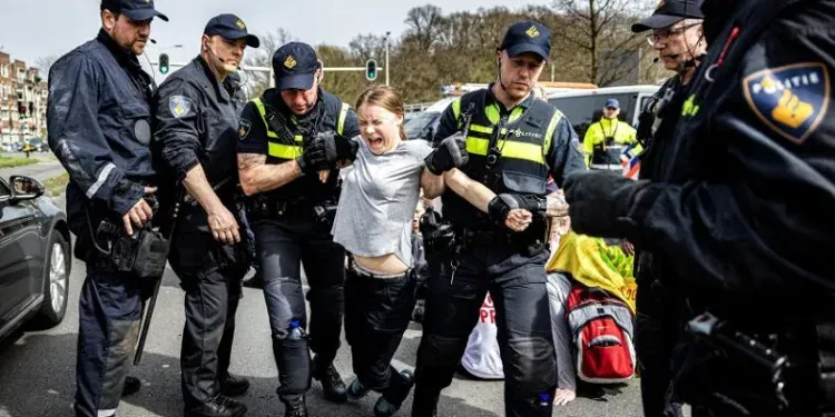 Холандската полиција ја уапсила климатската активистка Грета Тунберг на денешните протести одржани во Хаг, објавија медиумите.