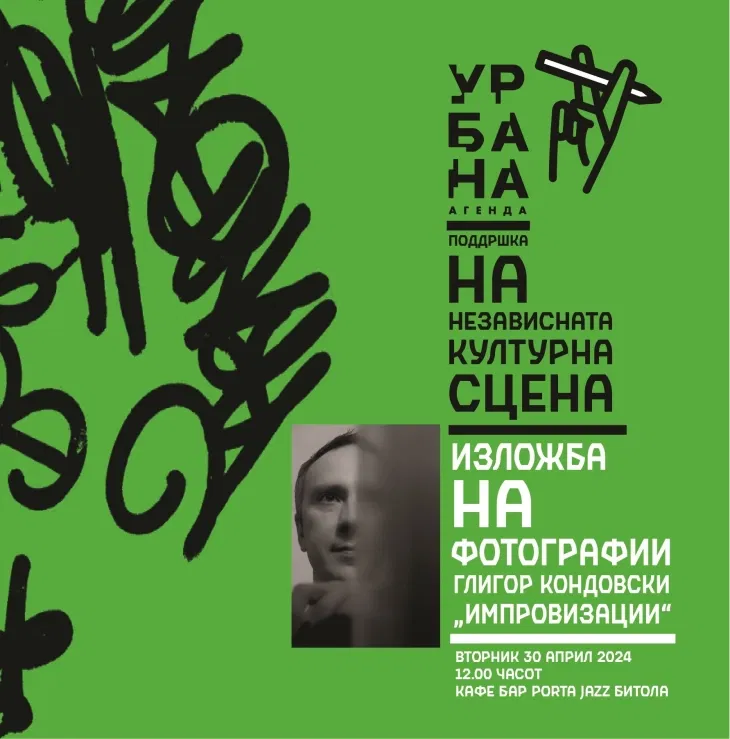 Во организација на Младински културен центар – Битола (МКЦ-Битола) денеска ќе биде отворена изложбата на уметничка фотографија „Импровизации“ на Глигор Кондовски.
