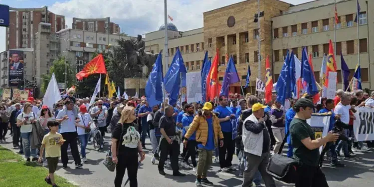 Пораст на платите во приватниот и во јавниот сектор, минимална плата во износ од најмалку 450 евра во првите 100 дена од новата влада, исплата на трошоците за храна во висина од 20 проценти од просечната плата и исплата на трошоците за превоз, побара Сојузот на синдикати на денешниот протест организиран по повод Меѓународниот ден на трудот.